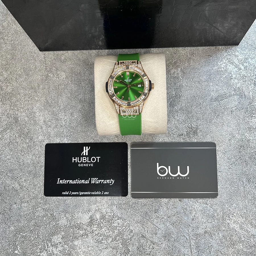 ساعت مچی هابلوت زنانه مدل Hublot Classic Fusion Green King Gold Pave